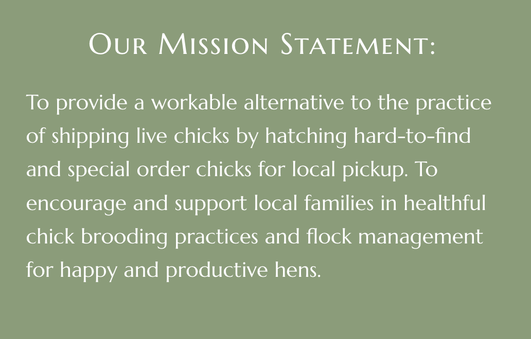 Happy to chat about chicks and chick care over the gate, or over texts and emails in the days that follow. Please do not hesitate to reach out with any questions or concerns, keeping in mind the second part of our Mission Statement.